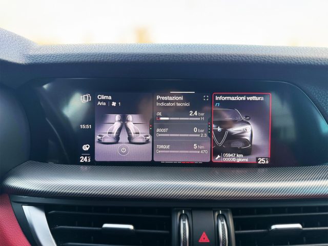 ALLESTIMENTO CHE COMPRENDE: COLORE BIANCO - CERCHI IN LEGA DA 20 POLLICI NERI - PINZE FRENO ROSSE - PARAURTI IN TINTA - FARI ALLO XENON CON LUCI DIURNE A LED - INTERNO IN PELLE ROSSA - SEDILI ELETTRICI - SEDILI RISCALDATI E VOLANTE RISCALDATO - VOLATE IN PELLE MULTIFUNZIONE - PALETTE AL VOLANTE - CRUISE CONTROL ADATTIVO - BLIND SPOT MONITOR - LINE ASSIST - COMPUTER DI BORDO - CAR PLAY ED ANDROID AUTO - SENSORI DI PARCHEGGIO - TELECAMERA POSTERIORE - PORTELLONE AUTOMATICO POSTERIORI - NAVIGATORE CARTOGRAFICO - SELETTORE DI GUIDA DNA - TELEFONO BLUETOOTH - BLUETOOTH AUDIO - PRESA USB - RADIO DAB - VETTURA COMPLETA DI TUTTI GLI OPTIONAL DI SICUREZZA.